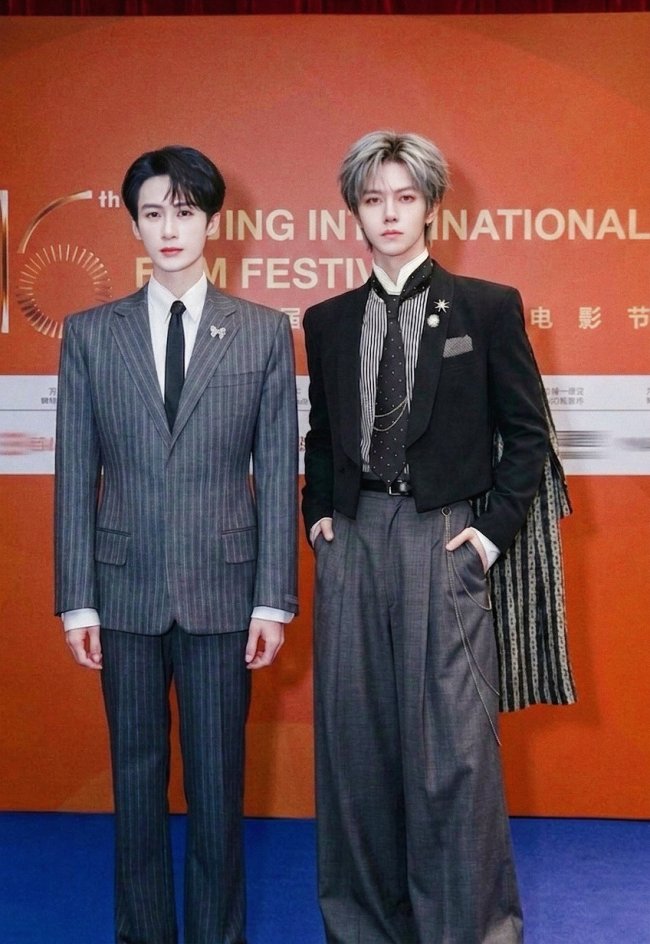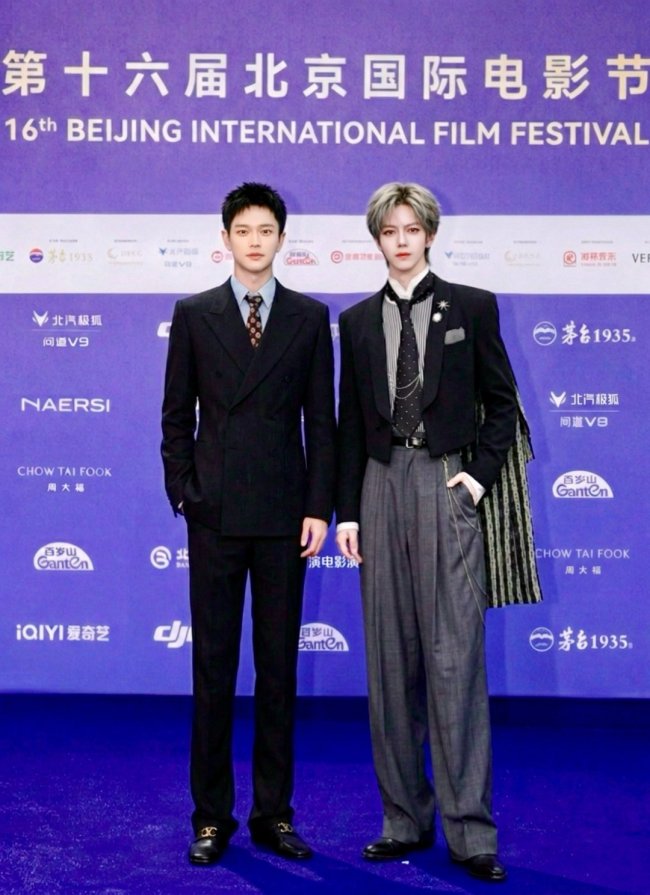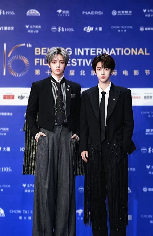▲单潇凌先生与演员檀健次在开幕式红毯现场